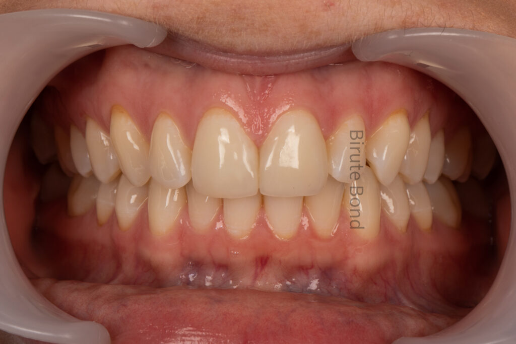 Fabulous smile transformation by Dr. Birute Bond with: dental implant crown on upper right 2